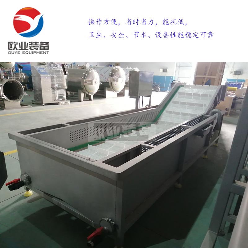 冷卻流水線采用優(yōu)質(zhì)不銹鋼制作,先進的控制儀表,有造型美觀。操作機維護方便等特點,與目前土法(殺菌池)相比勞動強度低,人力少,自控化程度高,溫度可在98°內(nèi)自動調(diào)控,上下層水溫差較小,產(chǎn)品質(zhì)量容易控制,本產(chǎn)品完全符號GMP,HACCP的認證要求,衛(wèi)生高率,是蔬菜食品加工行業(yè)的理想設(shè)備。巴氏消毒其實就是利用病原體不是很耐熱的特點,用適當?shù)臏囟群捅貢r間處理,將其全部殺滅。但經(jīng)巴氏消毒后,仍保留了小部分無害或有益、較耐熱的細菌或細菌芽孢。 低溫巴氏殺菌冷卻流水線自動運行節(jié)省成本,適合于軟包裝蔬菜制品的滅菌,低溫肉制品包裝后的二次滅菌,也適用于瓶裝食品的滅菌、飲料滅菌及蔬菜的漂燙等。適用于真空軟包裝食品、低溫肉食制品、火腿腸、香腸、果品、果汁飲料、蔬菜汁飲料、醬腌菜、醬菜、鹽漬菜、腌漬菜、大根、泡菜、榨菜、山野菜、果醬、果凍、豆制品等真空軟包裝食品、軟管軟瓶包裝物、玻璃瓶包裝物的滅菌。該機還適用于果品蔬菜的漂燙或予煮等工序